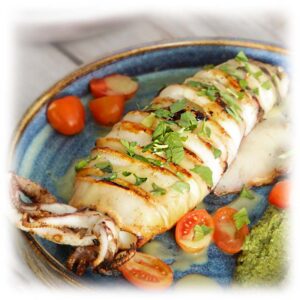 Locally known as chocolate squid or ‘chokka’, this South African squid is a 20~30 cm long squid and it is prized for its firm texture and sweet taste and it is considered to be one of the best eating squid in the world. It is frozen at sea immediately after catching to maintain its natural chocolate pigment.