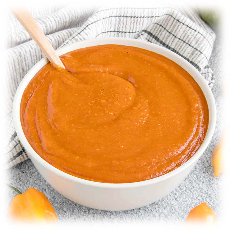 Ζάχαρη, Νερό, Πουρές Μάνγκο (8%), Σιρόπι Γλυκόζης-Φρουκτόζης, Αλάτι, Τροποποιημένο Άμυλο, Σκόνη Πιπεριού Χαμπανέρο (1%), Ξίδι Από Αλκοόλη (Χυμός Μήλου, Αλκοόλη, Αλάτι, Νερό), Σκόνη Κόκκινου Πιπεριού, Διατροφικές Ίνες, Σκόνη Κύμινου, Χρωστική [E160c], Πυκνωτικό [E415].