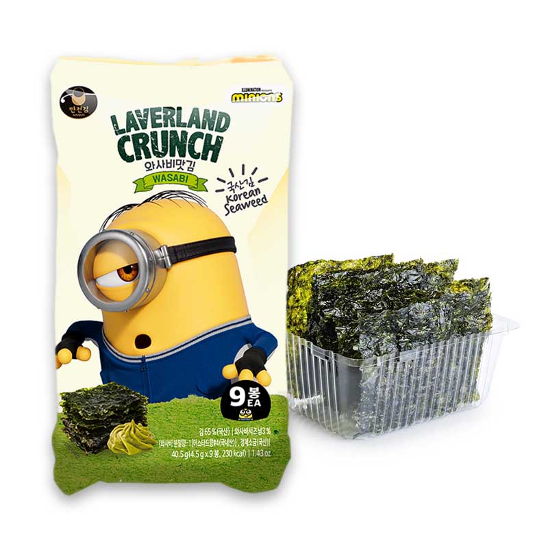 Crunchy seaweed snack with wasabi flavor – Contains 9 packs