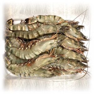 The Black tiger shrimp is large, dark-striped shrimp known for their sweet, firm, and robust flavor, making them a popular choice for seafood dishes like grilling, stir-fries and curries. Originating from the Indo-Pacific they are widely farmed in aquaculture for consistent quality and availability. When cooked, their shells turn a dark blue or greenish-black, and their flesh remains firm.