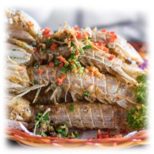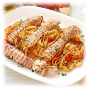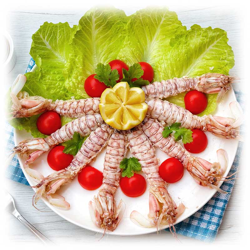The Spottail Mantis Shrimp (Squilla Mantis) is found in high densities in areas with suitable burrowing substrates in the Mediterranean Sea. This specie is more closely related to crustaceans, cephalopods and benthic fish’s. They are highly prized for their exceptionally sweet, delicate meat, often described as a superior blend of lobster and prawn. The tender, white flesh has a firm, slightly bouncy texture that is best when steamed, grilled, or fried with salt and pepper to highlight its mild, oceanic flavor.