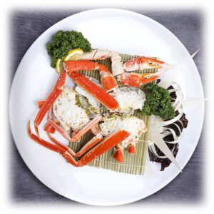 The snow crab, a species of spider crab found in deep cold waters of the northern Pacific and Atlantic oceans, is known for its spider-like appearance, long legs and round carapace. Snow crab’s fibrous meat makes it ideal for use in salads, soups and crab cakes. With its delicate, iodized flesh, crab is an original ingredient for a wide variety of recipes… As an aperitif with mayonnaise, in a delicious crab salad, in pasta, or for tasty crab cakes. The choice is yours!