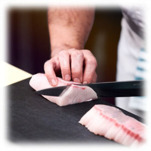 Yellowtail is regarded as the premier white fish for raw dishes by every fish loving culture in the world. Easily identifiable due to its trademark bright red bloodline, Yellowtail delivers a clean flavour and an unforgettable melt in the mouth texture. Although found in waters worldwide, the Ike-Jime standard Spencer Gulf Kingfish from the cold oceanic waters in South Australia has long been the most highly prized with European chefs. More recently, the very best handled Hamachi from Japan has been adopted by some European chefs, looking for the extreme butteriness this species offers.