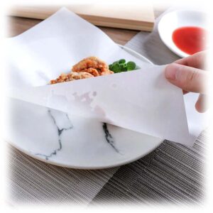Traditionally used for tempura service, this paper is ideal for use with any fried food as it absorbs excess oil, keeping fried foods crisp while allowing for a clean presentation. The sheets are used to coat the food items to be fried in tempura batter, helping to absorb excess oil and prevent the food from sticking to the frying basket or each other. Tempura sheets are also disposable, making them convenient and easy to use for home cooks and professional chefs alike!